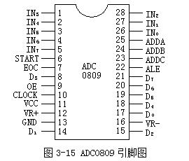 ADC0809的引脚如图3-15所示: