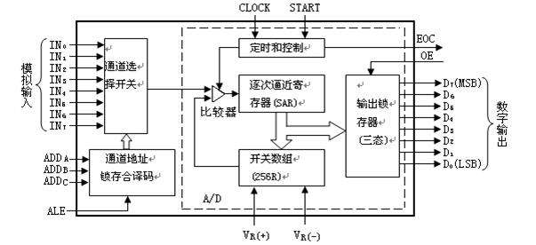 ADC0809的内部逻辑结构如图3-16 所示: