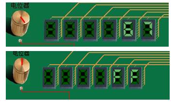 ;选用LED七段显示器的第五和第六个来显示转换的数字